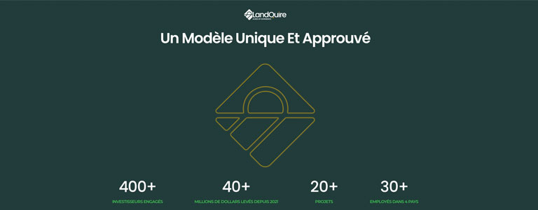 Nous identifions les meilleures opportunités foncières avant tout le monde. Grâce à notre expertise en matière d’analyse de données, nous identifions les meilleures opportunités foncières aux États-Unis. Cela nous permet de collaborer avec les municipalités pour concevoir des projets immobiliers en adéquation avec la demande locale. Avec un ticket d’entrée à partir de 100 000 USD et un horizon d’investissement allant de 18 à 24 mois, nous avons déjà convaincu des centaines d’investisseurs à travers le monde. En quelques mots !! LandQuire est une entreprise innovante de Private Equity immobilier fondée par Romain Daniellou et Thibaut Guéant. Spécialisée dans l’acquisition et la valorisation de terrains off-market aux États-Unis, elle utilise l’open data et des algorithmes avancés pour identifier des opportunités avant la concurrence. Son modèle économique repose sur l’achat de terrains à bas prix, leur valorisation via des démarches d’aménagement, puis leur revente à des promoteurs. Ses clients principaux sont des investisseurs francophones souhaitant diversifier leur portefeuille immobilier sans les contraintes liées aux biens locatifs. L’entreprise offre des rendements attractifs (20 % net par an en moyenne) et une structure de partage des bénéfices avantageuse (50 % des bénéfices pour les investisseurs). L’innovation technologique est au cœur de sa stratégie : grâce à l’analyse de données foncières et à l’automatisation du contact avec les propriétaires, elle accélère ses acquisitions. En ciblant des zones à forte croissance, LandQuire répond au déficit de logements aux États-Unis et collabore avec les municipalités pour optimiser l’urbanisation. L’entreprise ambitionne de devenir leader du Private Equity foncier, grâce à une stratégie basée sur la data et une gestion clé en main pour ses partenaires financiers. |